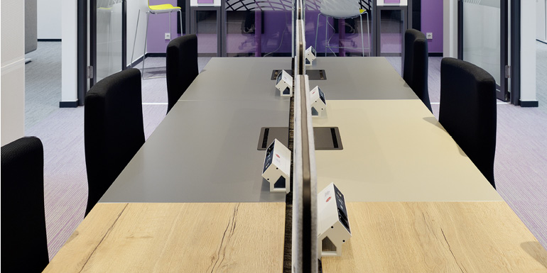 Entwickelt wurde die moderne Raumgestaltung und Innenarchitektur des Gebäudes durch das Hamburger Designbüro Seel Bobsin Partner Design-Konzeptionen. Durch den Architekten wurden hier bewusst DESK 2 Steckdosenleisten von BACHMANN an zahlreichen Arbeitsplätzen im Gebäude platziert.