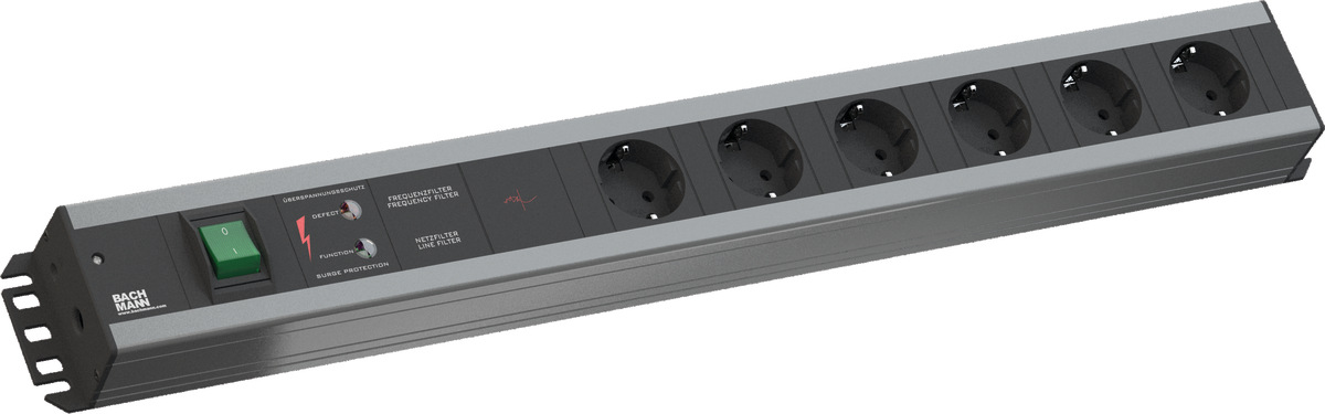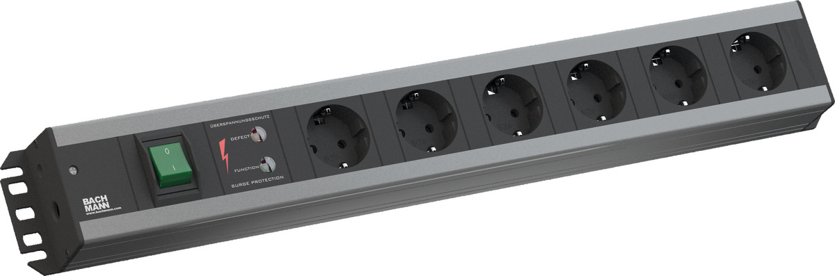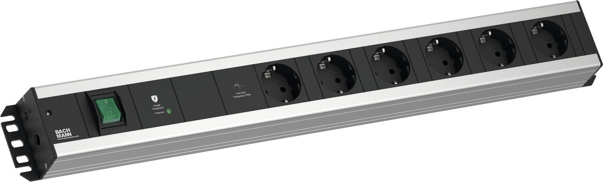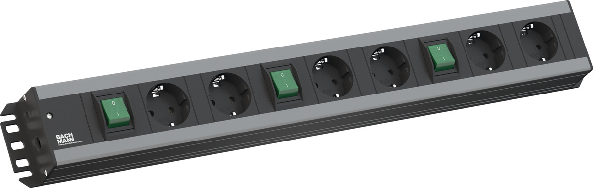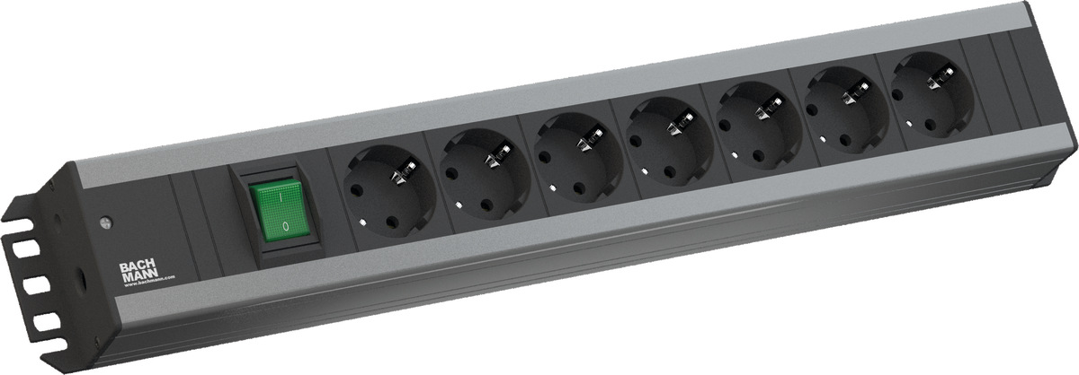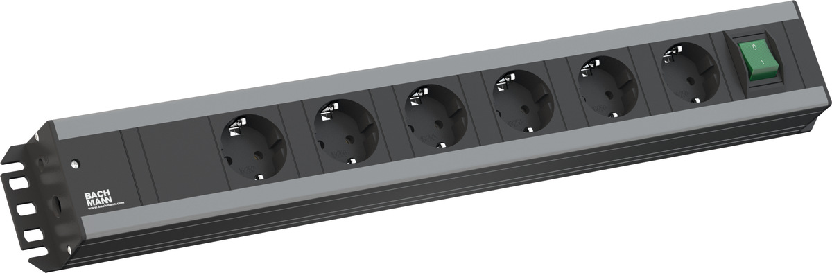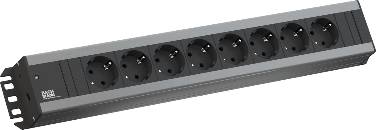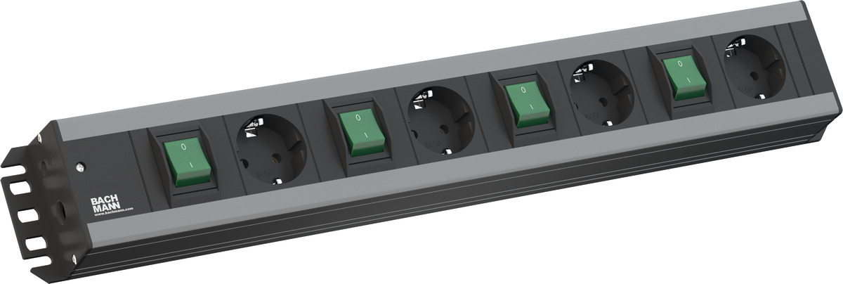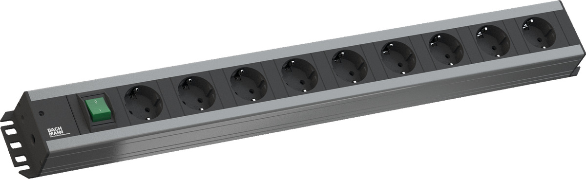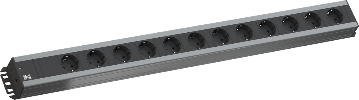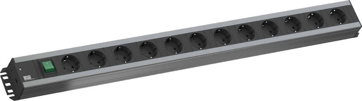 Práctica: Las cajas de enchufe con puesta a tierra giradas 90° y la distancia que se halla entre medio hacen posible también la colocación de conectores macho más grandes. Este fiable ayudante puede utilizarse en cualquier lugar donde se trabaje: La REGLETA PARA PROFESIONALES de BACHMANN. Una regleta de caja de enchufes que convence por su clásico y robusto perfil de plástico, así como por su forma rectilínea y práctica. Al mismo tiempo, puede elegirse entre una variedad de diferentes versiones del producto: Por ejemplo, la REGLETA PARA PROFESIONALES está disponible con una distancia opcional de 15 mm entre los insertos de enchufe. Esto permite colocar sin problemas las fuentes de alimentación y los equipos de trabajo. Asimismo, hay disponible una versión en 19" con orificios enroscables adicionales para el montaje en armarios de datos. La práctica regleta de caja de enchufes es aún más flexible gracias a la conexión adicional del conductor de tierra; fácil de instalar, pues no requiere abrir la carcasa. No cabe duda: ¡una regleta para todos los casos!