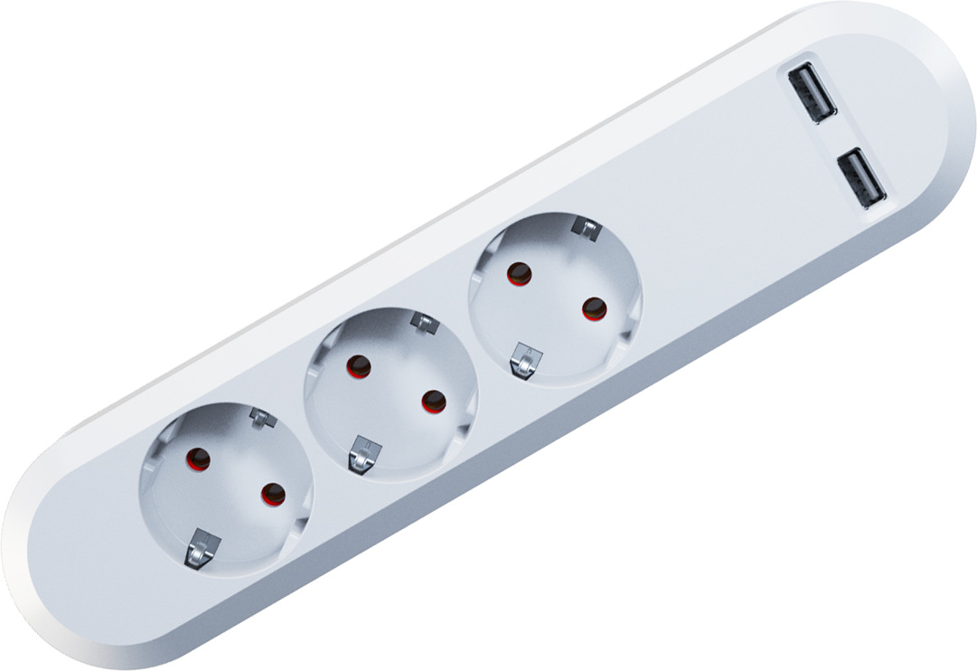 USB SMART 3 x toma con contacto de puesta a tierra | Regleta de caja de enchufes con cargador USB doble integrado, 16 A / 230 V~ | 1,5 m H05VV-F 3G 1,5mm²