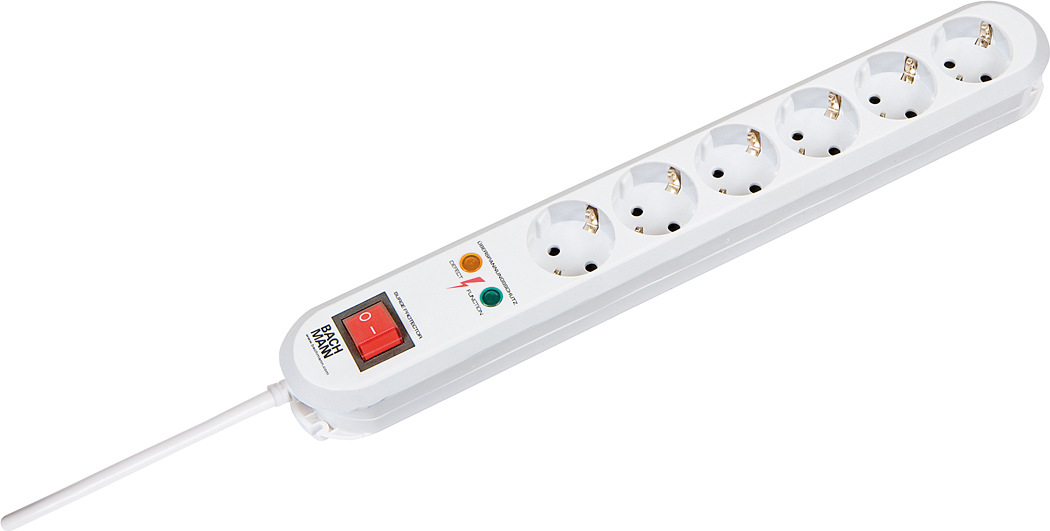 El enchufe de mesa en calidad de comercio especializado es de plástico resistente a impactos y dispone de agujeros enroscables para una fijación rápida y segura. En promedio, el 89 % de la población alemana tiene entre dos y seis enchufes en cada habitación, el 10 % incluso más de siete*. Ahora bien, para aquellos casos en los que no se tienen suficientes está disponible SMART de BACHMANN. La clásica regleta de caja de enchufes de plástico resistente a los golpes cumple exactamente la función que se espera de ella: la distribución de la energía. Además, la SMART ofrece una serie de agradables características que hacen que sea aún más cómoda de usar, como los insertos de enchufe girados 35° y dotados de contacto de puesta a tierra niquelado. Asimismo, cuenta con una práctica bobina de cable que evita enredos no deseados. La protección contra contacto accidental evita accidentes desagradables, y los orificios enroscables permiten una fijación rápida y segura. La alimentación de energía tiene lugar a través de una salida lateral del cable con puesta a tierra moldeada por inyección con un sistema de doble contacto a tierra. Gracias al conmutador de tecla basculante de 2 polos iluminado puede verse rápidamente si la SMART está en modo encendido o apagado.